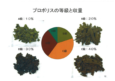 - 鮮度:鮮度の高いプロポリスを採取し、新鮮なうちに抽出工程に入ること