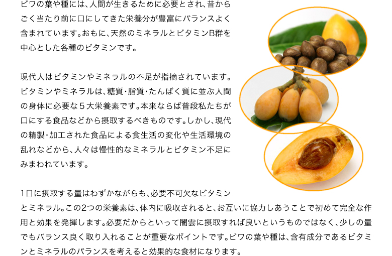 | 原材料名 | ビワ種粉末、乳清カルシウム、麦芽糖、乳糖、ショ糖脂肪酸エステル |