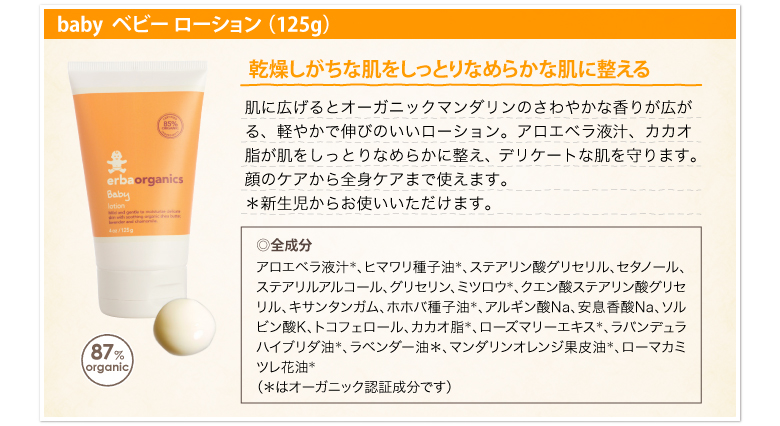 【エルバオーガニクス/ベビー】 ベビーローション 125g