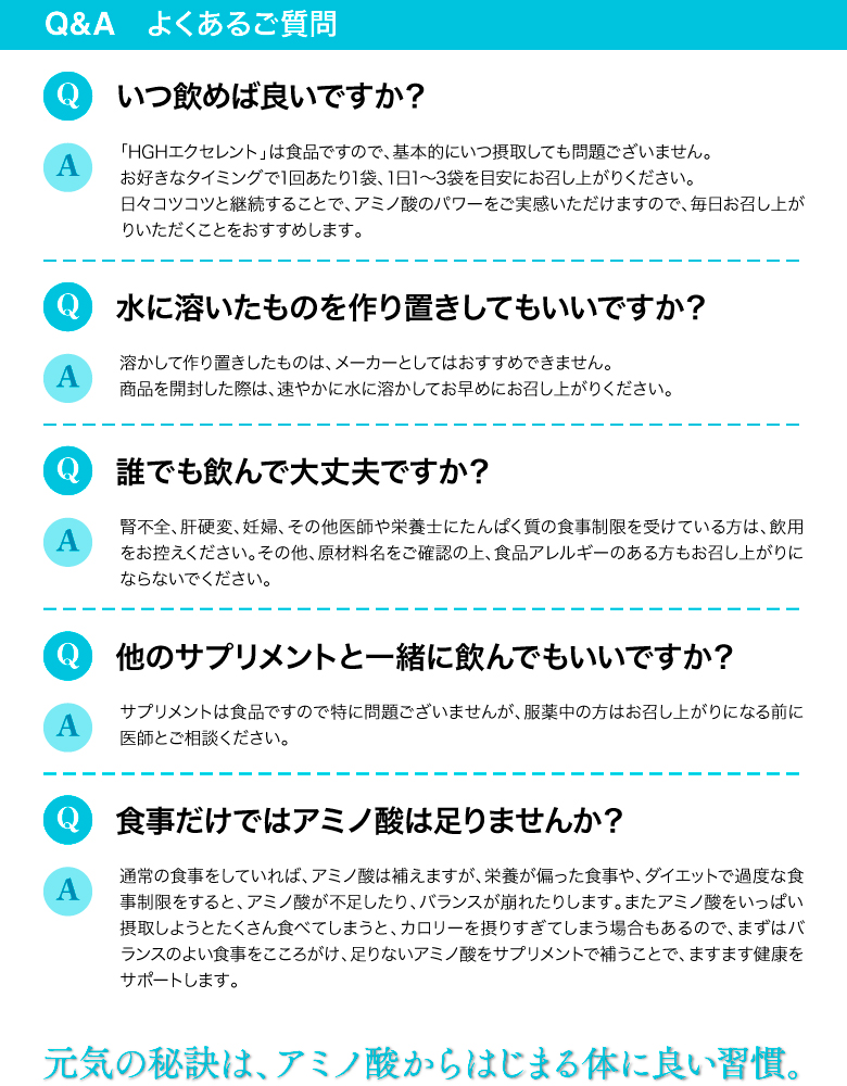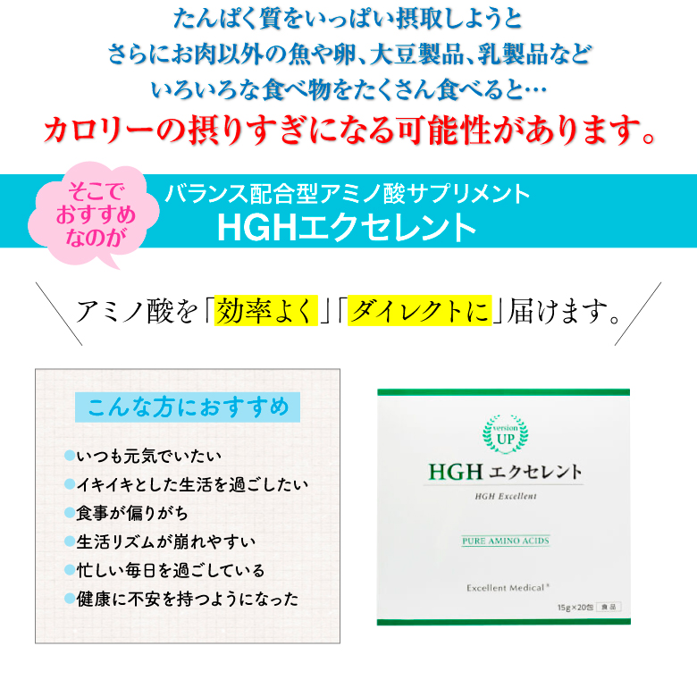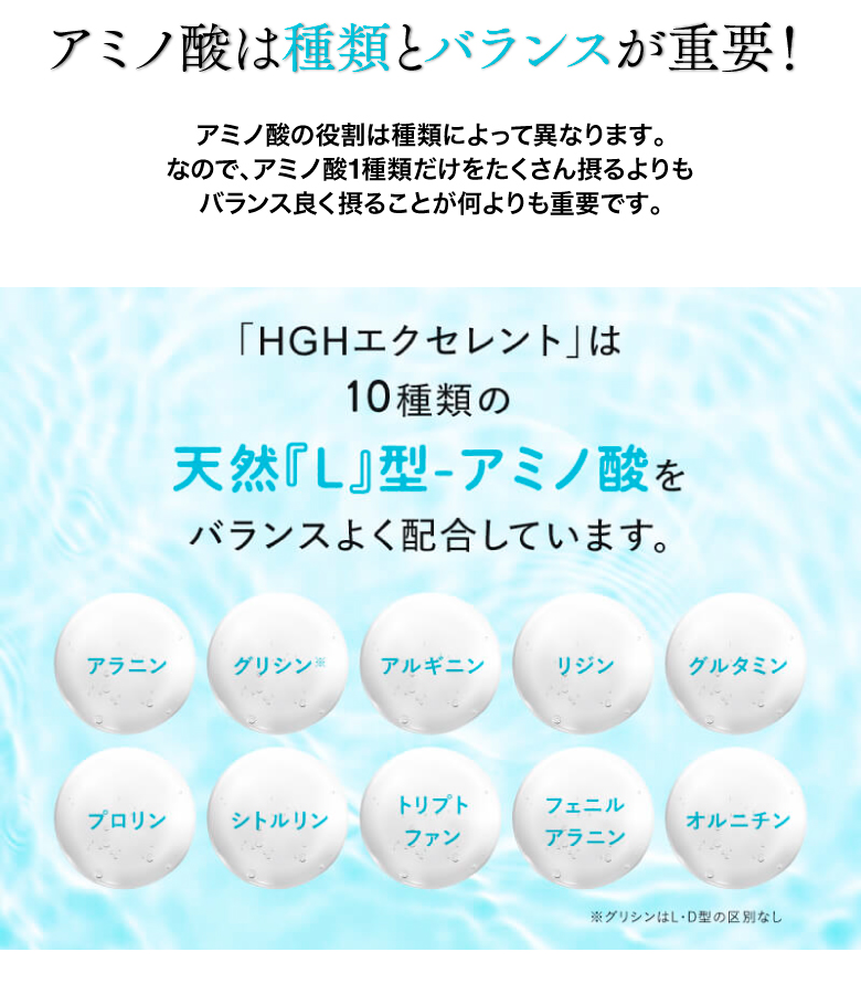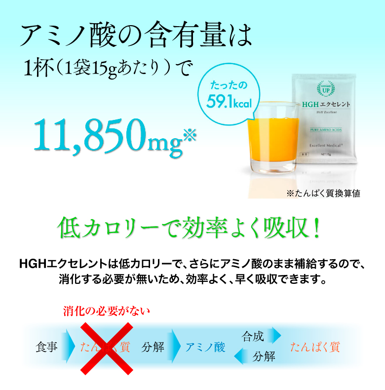 | 商品説明 | 体内で合成されるホルモンはアミノ酸で作られています。「HGHエクセレント」はトップクラスの含有量とベストバランス兼ねた アミノ酸サプリメントです。 |