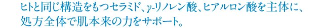 細胞間脂質により近い成分を使うことによって、素早く肌になじみ細胞間脂質を整えます。