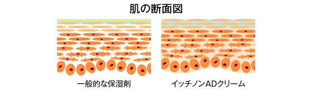 イッチノンADクリームはこの細胞間脂質に近い成分を使って作られています。肌なじみはよく、さらっとしているのにしっとりしている健康な肌に近づけます。