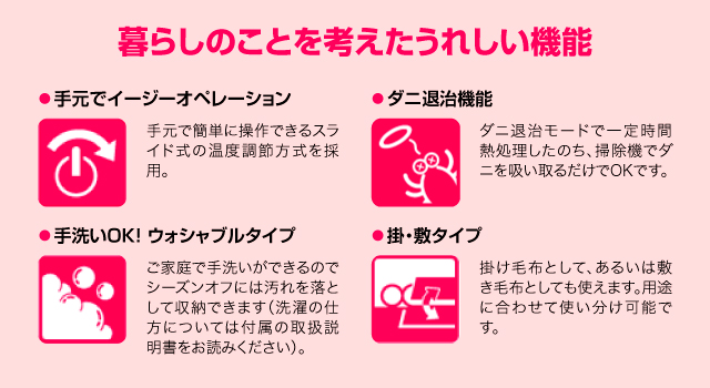 | コードの長さ | 電源側:約2m、毛布側:約1.7m |