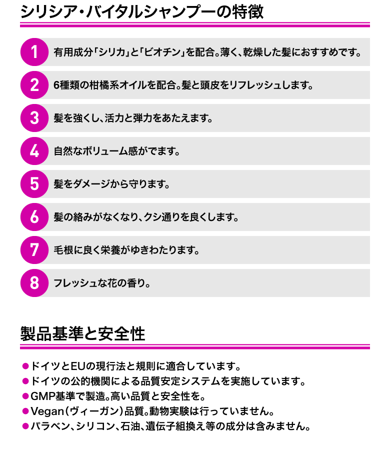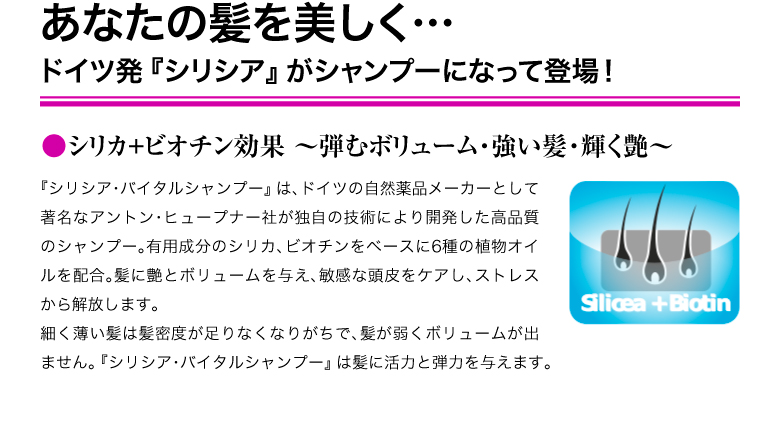 シリシア・バイタルシャンプー 200ml シリカ(ケイ素)&ビオチンシャンプー新発売